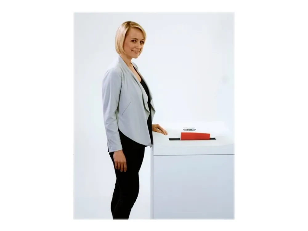 This solid and reliable document shredder is designed for small workgroups. The powerful motor with overload protection shreds documents, loyalty cards and credit cards in continuous operation safely and reliably. The shredder material is conveniently removed through the removable, reusable waste bag.