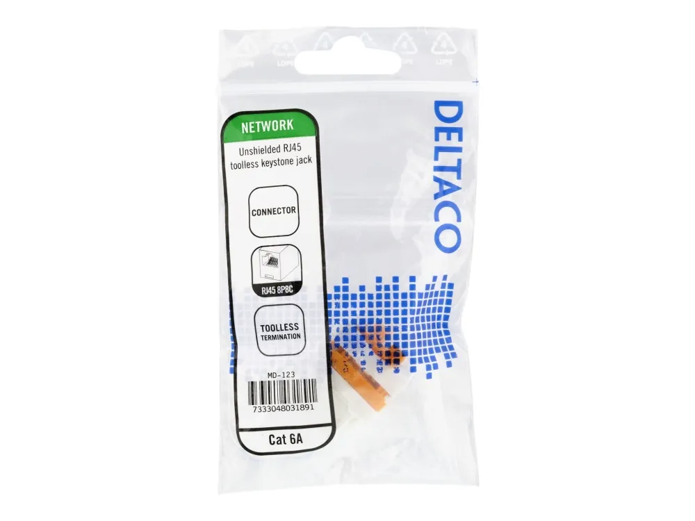 Liitinmoduuli, jonka käyttöönotto tapahtuu ilman erillisiä työkaluja. Aseta johtimet valmiiksi merkittyihin kohtiin ja ruuvaa osat kiinni toisiinsa. Kaapeli on tämän jälkeen valmis käytettäväksi.