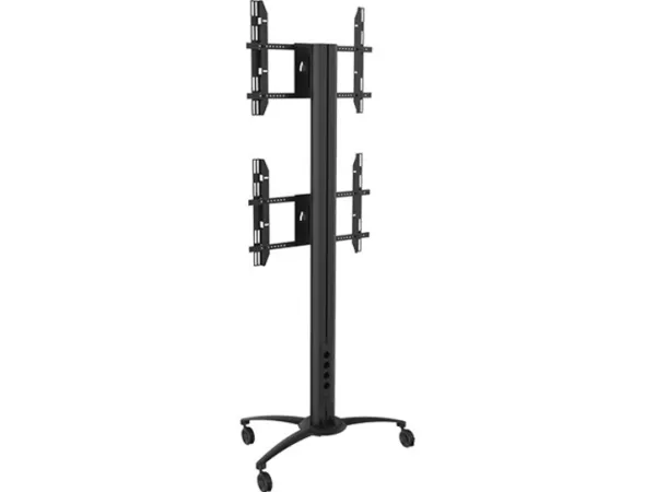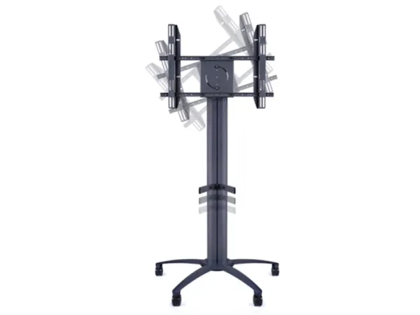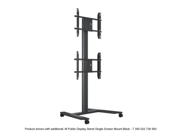 The M Multibrackets Public Display Stand can be used with screens in a standard landscape mode or a portrait mode. It can be used with or without wheels, and with or without shelves, camera holder and power outlet.
