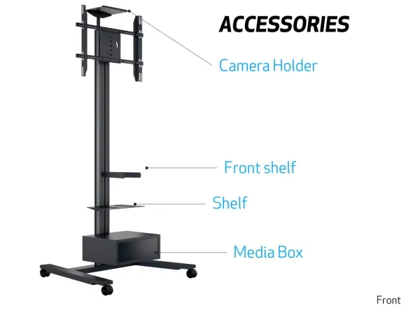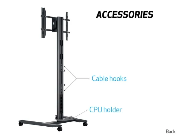 When developed much emphasize has been put into the stability and overall quality of the display stand, both when put in place but also when in movement. As a stabile and sophisticated display stand base with wheels are included as standard. This means the series is very easy to move around. This makes it a perfect partner for use in public environments such as conference rooms, class rooms or hospitals.