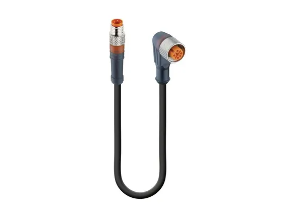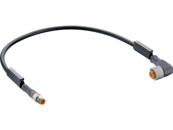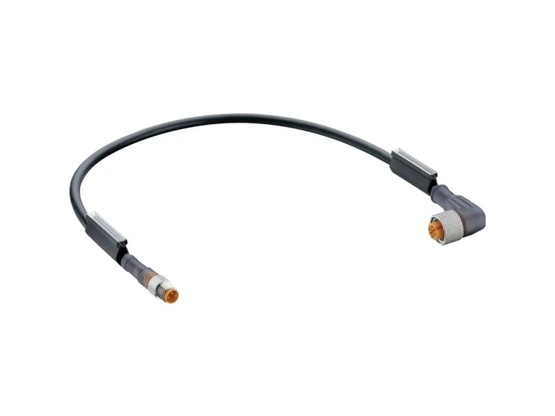 Liitäntäkaapeli, M8-pistoke, M12-kulmapistoke LED:llä ,Liitäntäkaapeli, M8-pistoke ja M12-kulmapistoke valetulla kaapelilla ja itselukittuvalla ruuviliitännällä. Pistoke LED-toiminnolla ja toimintojen ilmaisimella (PNP). Värikoodaus eurooppalaisen standardin IEC 61076-2-101 mukaisesti.