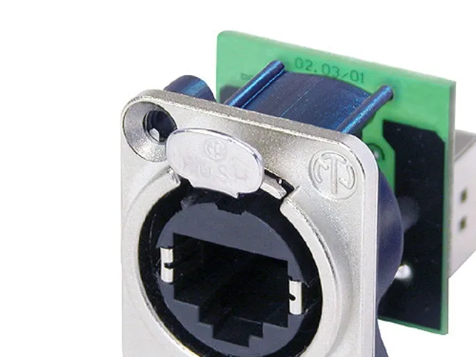 The etherCON Series is a ruggadized and lockable RJ45 connector system, optimized for proaudio, video and lightning network applications. The chassis connectors are shaped to fit into standardized panels out of the entertainment industry. The D-Series offers the most rugged design of the etherCON series and is perfectly suitable for panel mount and the installer market.
