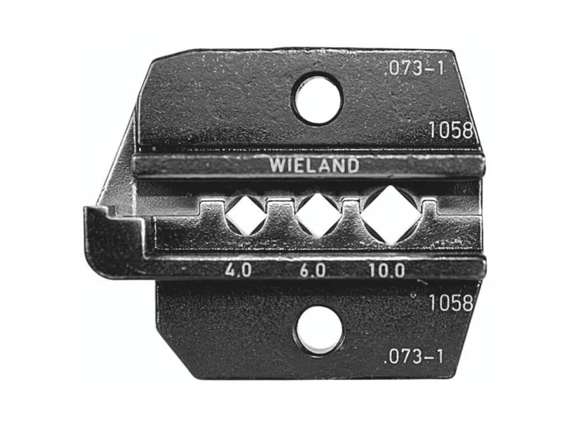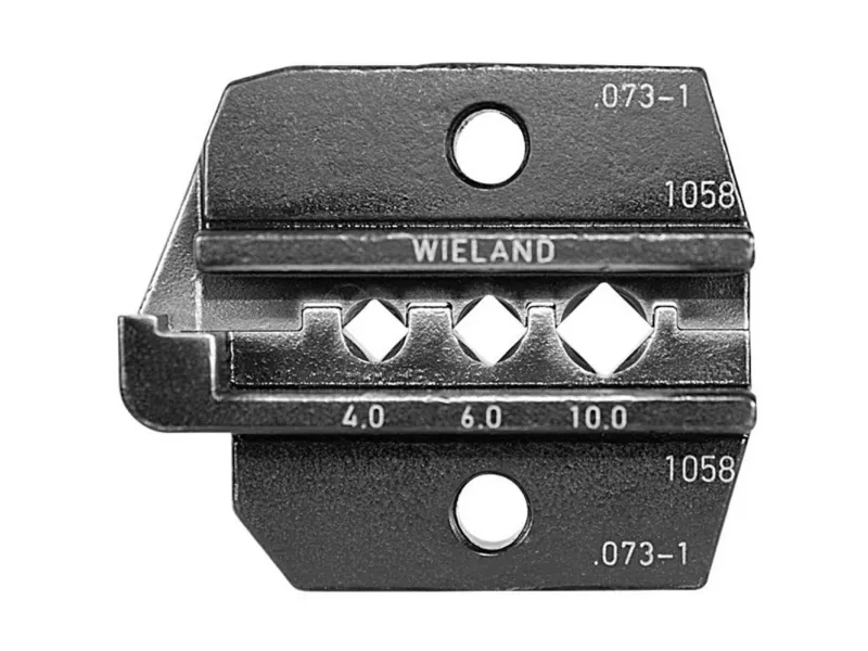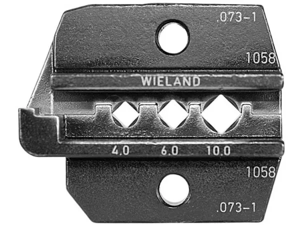Puristusliitin 12.73-1Crimp-pistorasia rullattuihin ja rei'itettyihin koskettimiin: 2,5 mm²/4 mm² ja 6 mm². F-crimp. Made in Germany