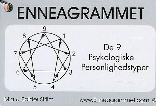 PersonlighedstyperSæt med 1 kort for hver Enneagramtype med kort beskrivelse af den enkelte types karakteristika, fællestræk og individuelle udtryk, kropssprog, udviklingsveje, reaktion ved stress og i tryghed, særlige bidrag til helheden samt hvad typen trives bedst med.