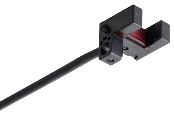 )Haarukkapidike valosähköiselle anturille pienessä koossa. 2 transistorilähtöä light-ON ja dark-ON. LED-näyttö kytkentätilasta. Säteen merkinnät helppoa asetusta varten. Kestää tärinää ja iskuja.