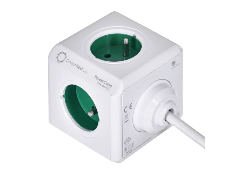 Allocacoc 2402GN/FREUPC, 1,5 m, Sisätila, Tyyppi E, Vihreä, Valkoinen, CE, KEMA FR, 4 AC-pistorasia(a)