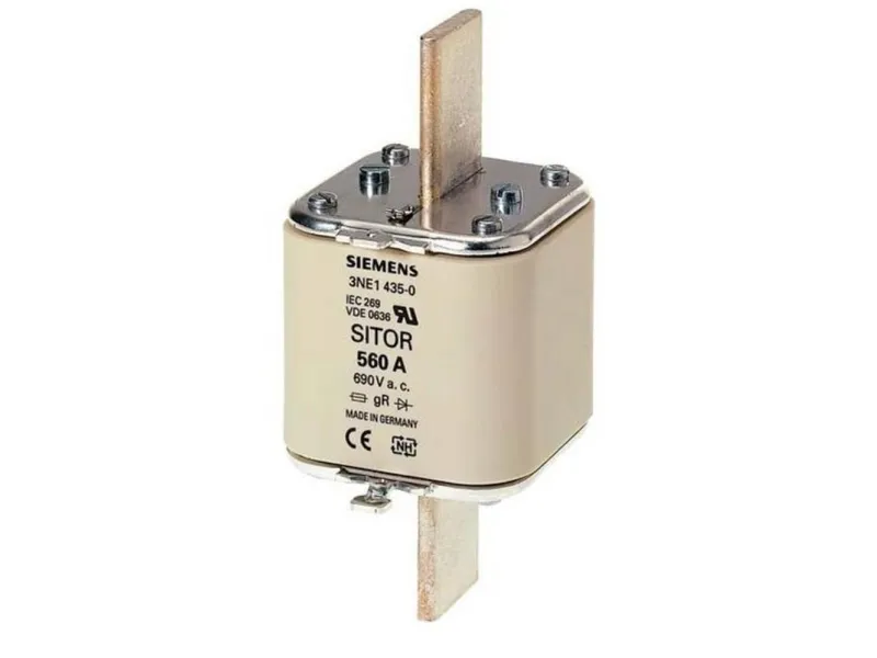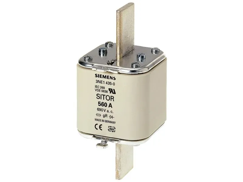 SITOR-sikringsindsats, med kniv kontakter, NH3, i: 800 A, gS, Un AC: 690 ... SITOR-sikringsindsats, med knivkontakter, NH3, in: 800 A, GS, UN AC: 690 V, UN DC: 440 V, ledningsalarm halvlederbeskyttelsesSITOR 3NE, 3NC beskytter effekthalvledere mod virkningerne af kortslutninger. SITOR-sikringssystemet fra Siemens som vigtig del af SENTRON beskyttelseskomponenter til el-installationer giver effektiv person-, enhed- og anlægsbeskyttelse med sikker frakobling i tilfælde af overbelastning og kortslutning. Anvendelsesområdet omfatter desuden frekvensomformer med sikringer i indgangs- og DC-mellemkreds samt UPS-anlæg og softstarter til motorer. Siemens SITOR-sikringer udmærker sig frem for alt ved: 1. Superfinkl ningskarakteristik i forhold til almindelige NH-sikringer. 2. Også effekthalvledere beskyttes sikkert i tilfælde af kortslutning. 3. Siemens kvalitetsstandarden sikrer en meget god lydgengivelse. 4. SITOR-cylindersikringer er godkendt iht. IEC og UL, for størstedelens vedkommende også CCC og kan de