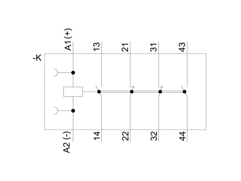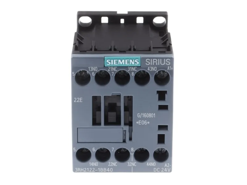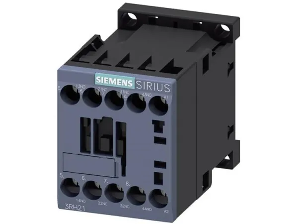 Contactor relay, 2 NO+2 NC, 24 V DC, S00, screw terminal Contactor relay, 2 NO + 2 NC, 24 V DC, Size S00, screw terminal Auxiliary contactor SIRIUS 3RH2 for switching the control signals in the control circuit. The SIRIUS 3RH2 contactor relays have standard-compliant terminal designations and a reliable and time-saving connection technology. Thanks to the multiplication of outputs, simultaneous switching of several auxiliary circuits is possible. All contacts are available with positively driven operation for safety applications as well as SUVA versions. The contactor relays are climate-resistant, have a high contact reliability and are suitable for use worldwide thanks to the corresponding approvals (e.g. IEC and UL/CSA). They are available with AC or DC operation and with screw or spring-loaded terminals. The basic version of the contactor relays is a 4-pole design which can be extended up to 8 poles by means of snap-on auxiliary switches. The extensive range of accessories for the 3RT2 contactors in sizes S00 to S3 can also be used for the 3RH2 contactor relays. The 3RH2 contactor relays replace the well-proven 3RH1 series. Simple, efficient and always up to date - SIRIUS modular system.