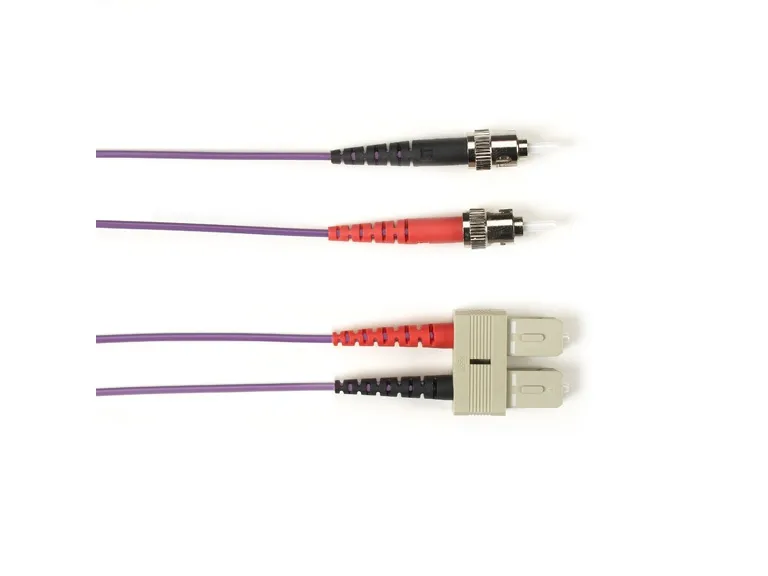 - Well suited for using in aircraft, ships, and construction areas. - OM1, OM2, and OM3 multimode plus single-mode cables are also available. - Get the connectors you want: ST, SC, LC, and MT-RJ in 10 different combinations. - Choose from 12 different colors. - Select from 13 lengths ranging from 1 to 30 meters. - Get high performance at data rates up to 1 Gbps at 850 nm. - Higher data aggregation in the backbone, riser, and high-speed parallel interconnects (HSPIs). - Full compatibility with a broad range of laser-based and legacy protocols and applications.