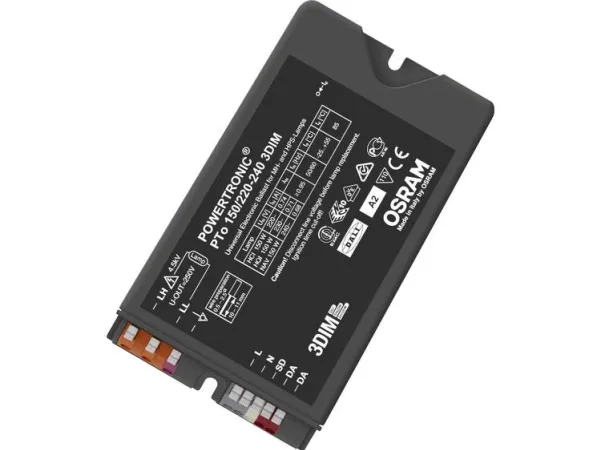 – 3DIM functionality (StepDIM/AstroDIM/DALI) – Energy Efficiency Index EEI: A2 – Lightning protection: up to 10 kV – Line voltage: 198…264 V – Line frequency: 50…60 Hz – Line harmonics according to EN 61000-3-2 – Immunity according to EN 61547 – RI suppression: to EN 55015 (A1: 2007) up to 300 MHz – Safety: to EN 61347-2-12 – Luminous flux factor 1 compared with CCG operation – Not suitable for DC operation