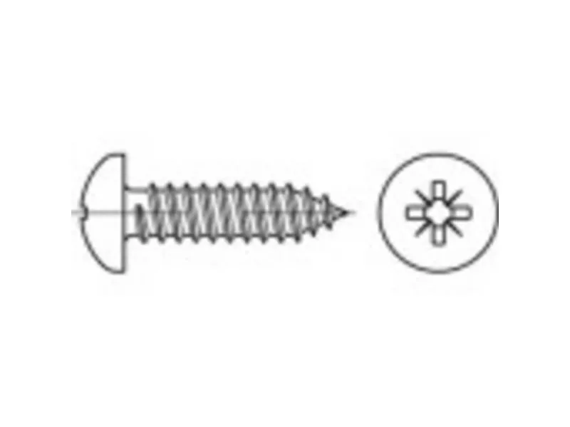 ISO 7049 teräs, kotelo. Muoto C-H galvanoitu Linssinpää litteäpäiset ruuvit kärjellä, Phillips-ristipääruuvilla H-mitta: C3,9 x 9,5-H