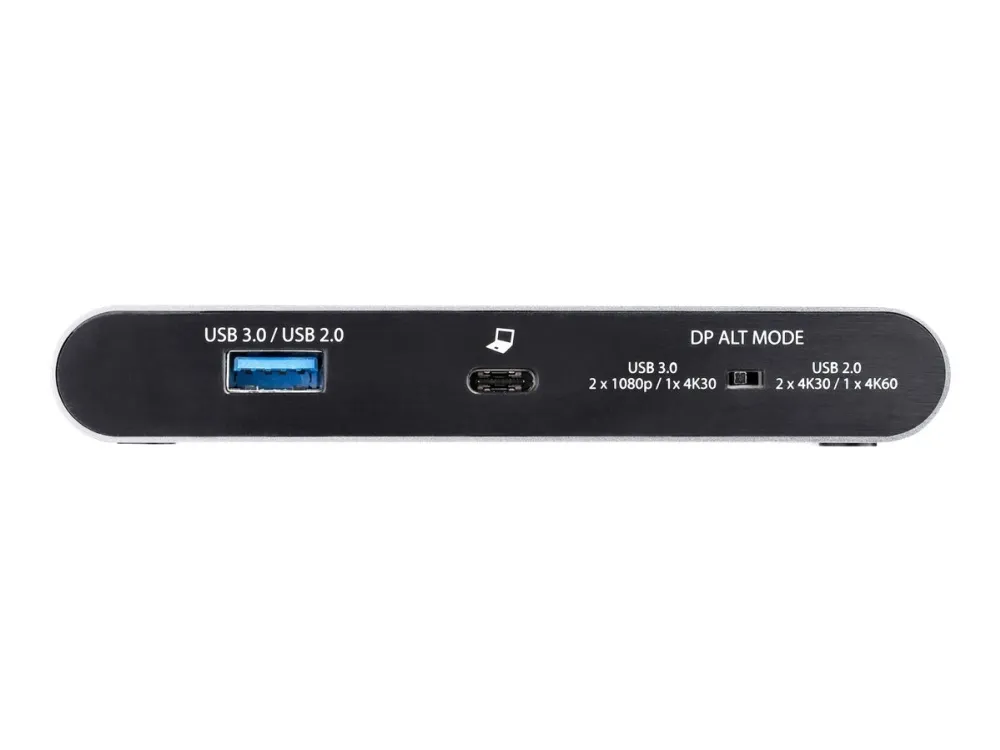 Transform your Windows laptop into a dual monitor workstation using this USB-C docking station. It offers support for dual DisplayPort monitors, 2 USB-A peripherals, a LAN port for GbE network access and an extended 1-meter host cable.