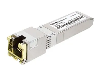 The 10GBASE-T SFP+ Copper Transceiver is specifically designed for high-speed communication links that require 10 gigabit Ethernet over Cat 6a/7 cable. It is the first SFP+ transceiver that offers 10 Gb/s communication over fiber optic media.