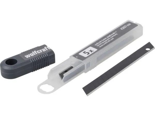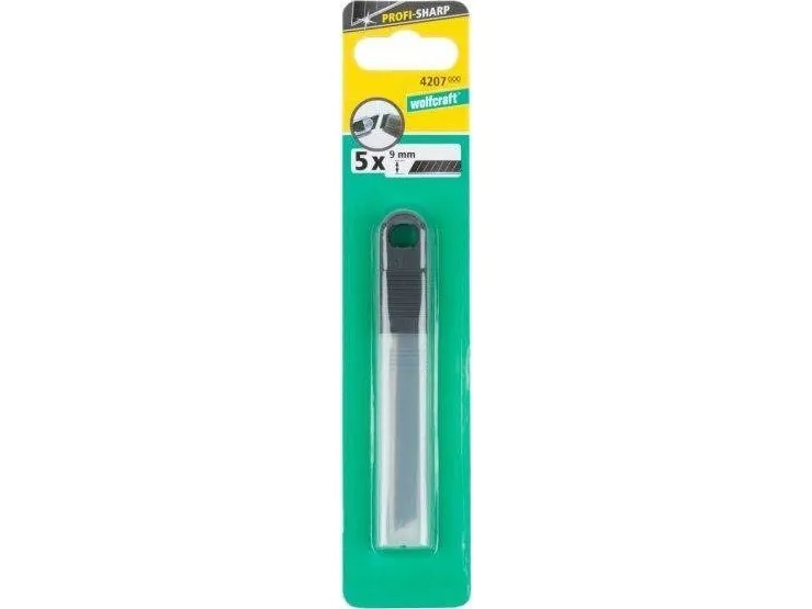 According to their VPA certificate, the black Pro-Sharp snap-off blades are up to 30 per cent sharper than conventional snap-off blades. The blade is 9 mm wide, consists of 13 snap-off segments and is compatible with all 9 mm snap-off blade knives. The set contains 5 blades.