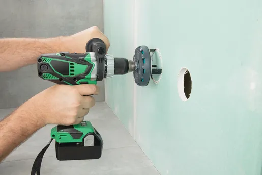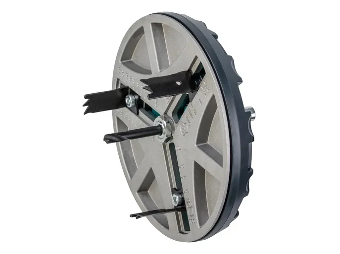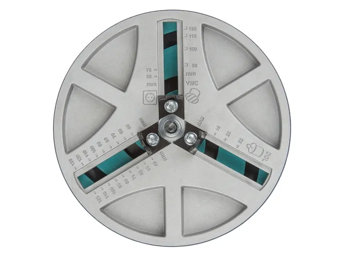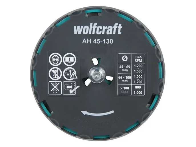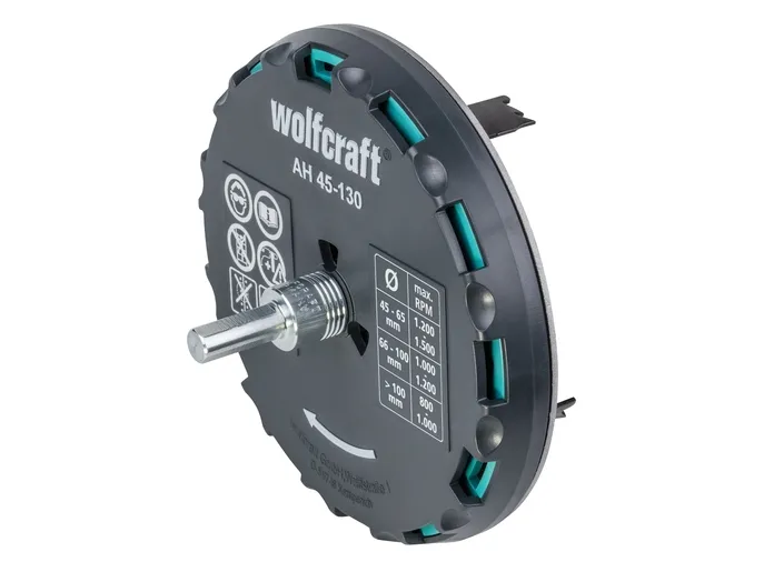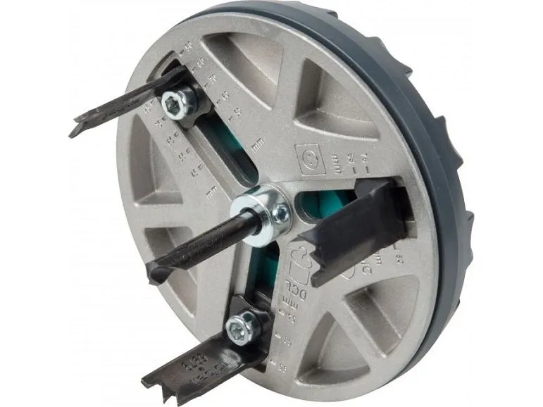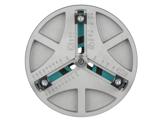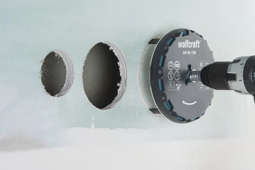 This adjustable hole saw lets you drill all holes from 45-90 and 45-130 mm. You only need one product for many diameters! The three triple tooth blades saw through plasterboard and softwood boards with ease, and ensure fine and clean cuts with their special, straight-set toothing. The size is set in three simple steps: loosen, adjust synchronously, and fasten. The integrated millimetre scale as well as further scales for standard installation diameters help you to find the right radius at a glance. The large drill disc protects the work area. Sufficiently large openings reliably remove the dust during rotation and stop it getting stuck in the drill body. This ensures the function of the positioning mechanism in the long term despite the formation of large quantities of dust.