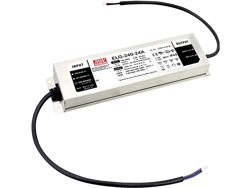 AC-DC Single output LED Driver (CV+CC) with PFC; 3 wire input; Output 24VDC at 10A; Dimming 0-10VDC or PWM resistance; IP67; Cable output