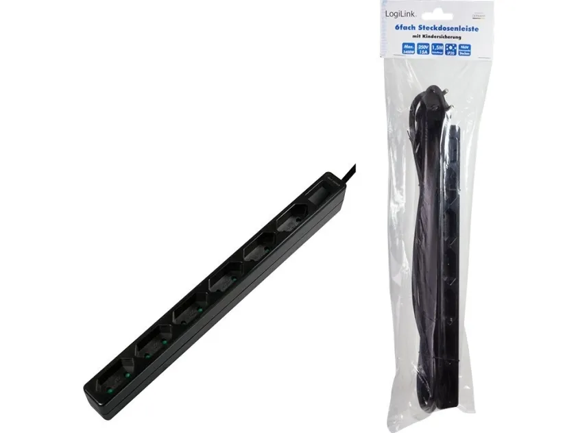 LogiLink's 6-way Euro socket strip is particularly space-saving due to its slim design and fits, for example, next to or behind cabinets. Even there where the usual socket strips do not find enough space. Up to six electrical devices with Euro plugs can be plugged in simultaneously. The sockets have a child protection. The cable length is 1.5m.