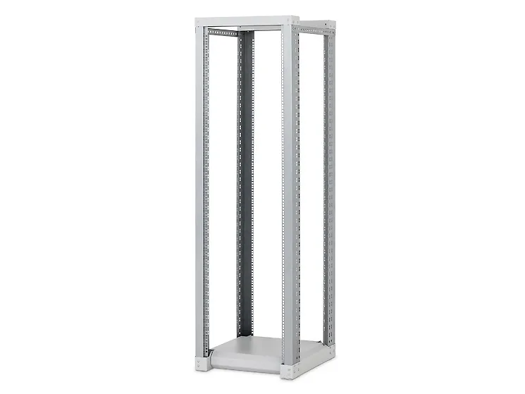 19” open frames suitable for the installation of equipment in protected environments, capacity 150 and 400 kg\n\nSingle section frames\n\nWe recommend the single section open frames for simple installations without heavy components.\n\nDouble section frames\n\nThe double section 19“ open frame is more suitable for installation of heavier and larger devices.\n\nDuring the development, we have focused on construction simplicity, easy installation and maintenance.\n\nRigid construction\n\nVertical profile rails provide a high maximum loading capacity and a rigidity of an open frame.\n\nCastors, nivelation feet\n\nPreparation for mounting of castors and nivelation feet.\n\nStabilization set\n\nIt is mounted additionally on the base of the double section frame and increases stability of the whole set in case of installation of slide-out devices, e.g. servers.\n\nOptional Accessory\n\nRAX-VP-Vxx-X2\n\nvertical cable management\n\nPower distribution units\n\nPossibility of installing PDU in skeleton rails using holders.