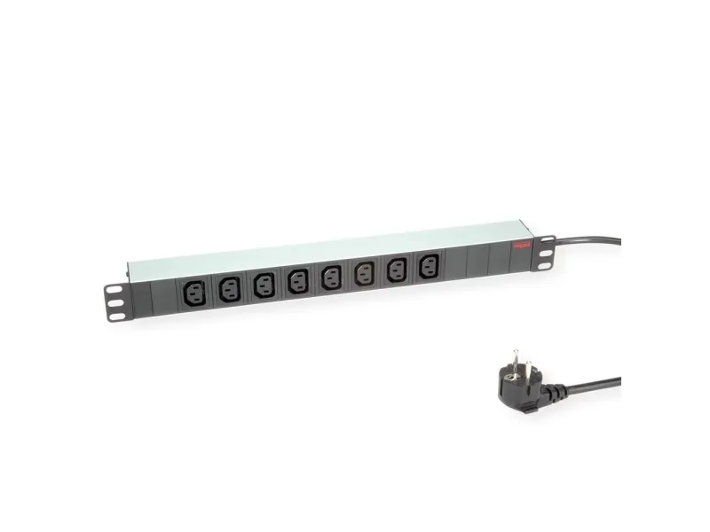 ROLINE 19.07.1628. Cable length: 2 m, Placement supported: Indoor, Power plug type: Type M. AC outlets quantity: 8 AC outlet(s). AC input voltage: 250 V. Width: 440 mm, Depth: 44 mm, Height: 44 mm