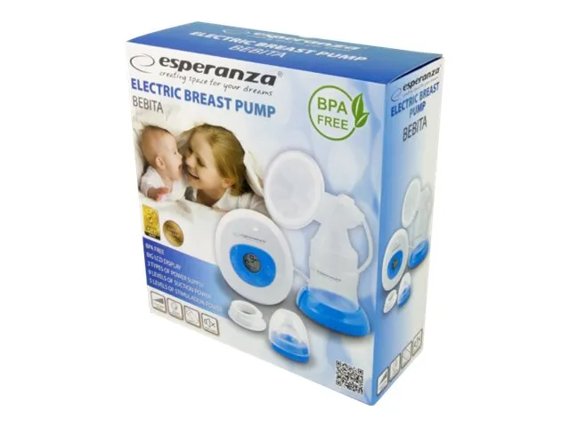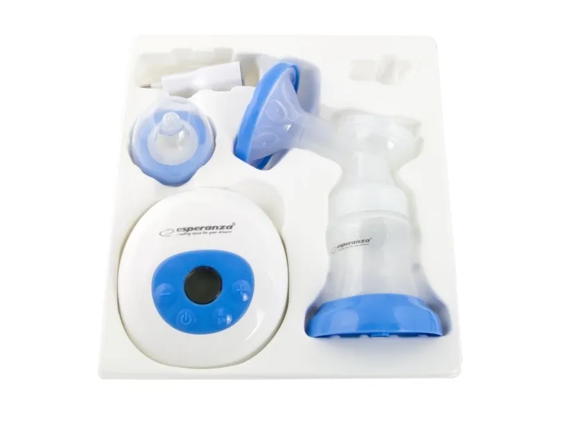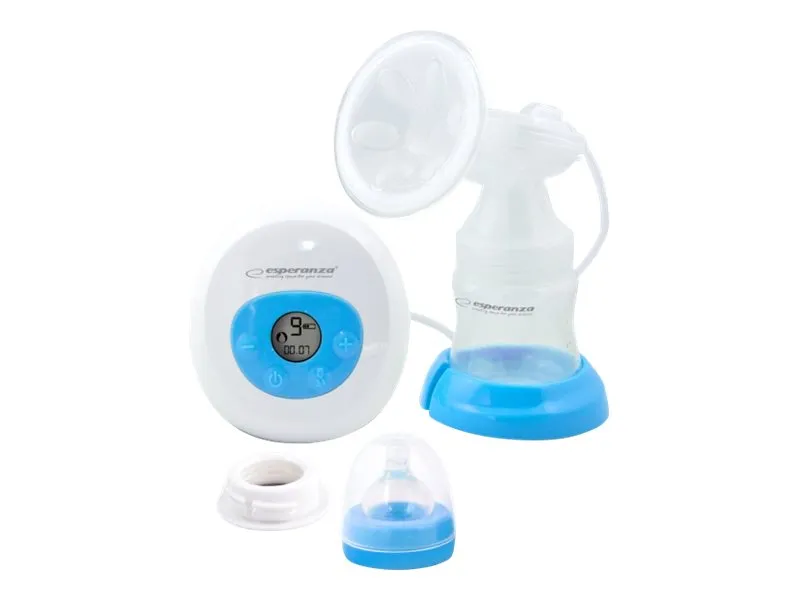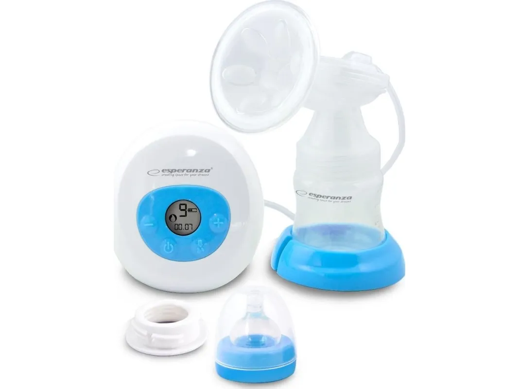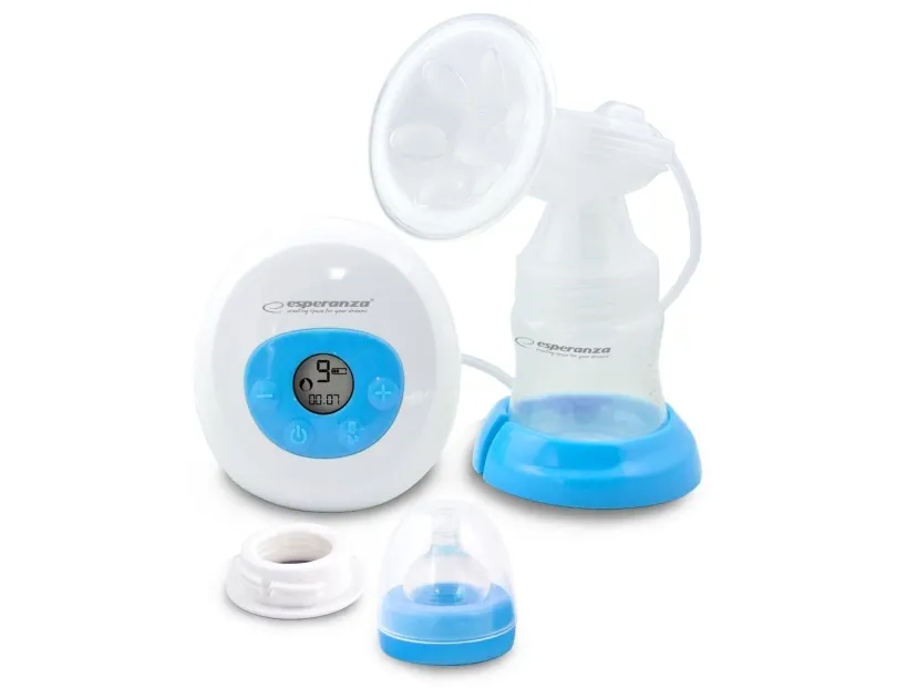 The Esperanza electric breast pump is a must-have device for every breastfeeding mum. It allows you to extract milk in a fast and comfortable way. It effectively supports and controls lactation, protects breasts from stagnation and facilitates feeding. The breast pump offers 5 stimulation level settings and 9 pumping power level settings. You can use them to adjust the breast pump performance to your individual needs. The Esperanza breast pump is very silent even when working in the top power mode, so you will not wake up your child while extracting milk. The 3 available power supply modes will allow you to use the breast pump at home, at a hospital, at work or on the go.