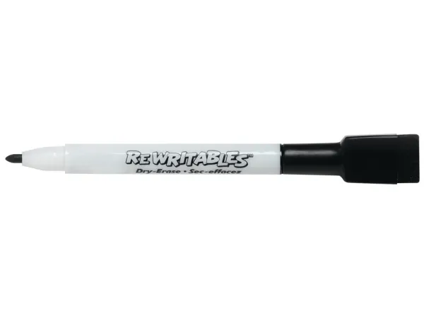 Rexel Mini Re-Writables are cap-mounted, dry-erase markers with a magnet and eraser.