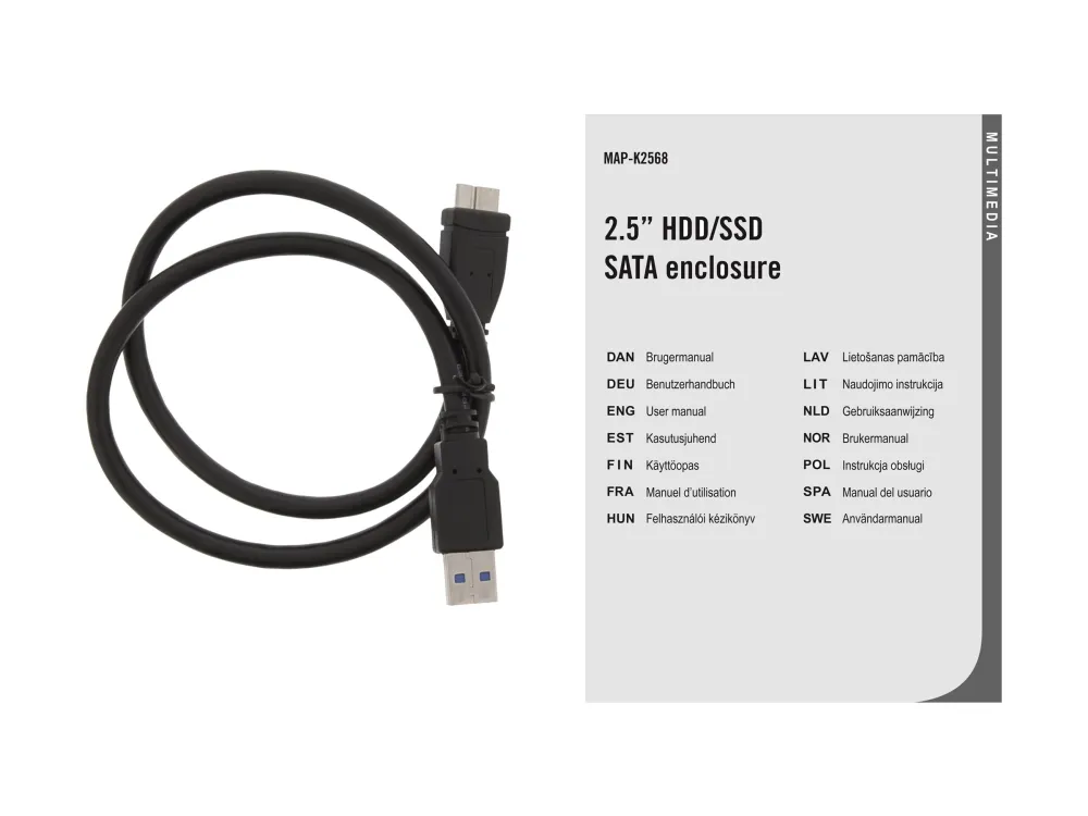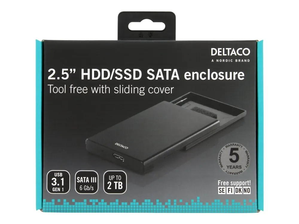 Ohut 2.5-tuumaisen SATA-levyn kotelo, jonka kovamuovinen ulkokuori suojaa levyä kolhuilta. Tuotteen asennus tapahtuu ilman työkaluja, minkä mahdollistaa alaosassa oleva luukku. Riittää, että työntää luukkua sisäänpäin ja kytkee levyssä olevan SATA-liittimen paikalleen.