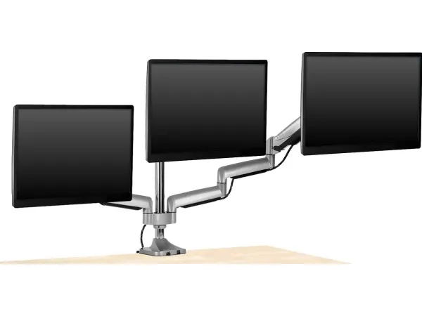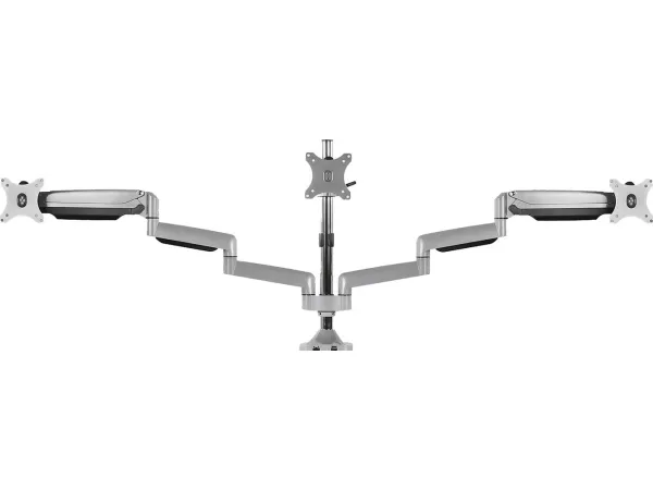 The triple monitor stand provides valuable work space on your desk. Constructed of high-grade aluminum, this stand is built to support three monitors up to 32 inch in size each. The IB-MS505-TI offers a variety of features including an easy height adjustment, tilting angles for your screens and numerous adjustable joints. Tighten or loosen each joint according to your preferences. Monitors can be rotated to landscape and portrait positions.
