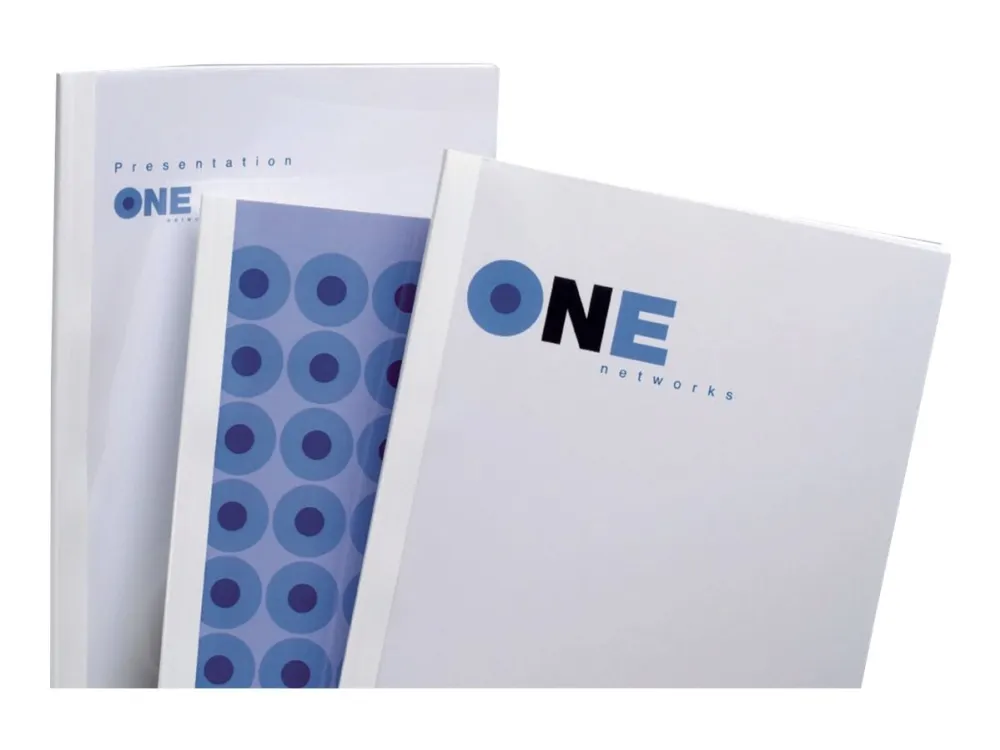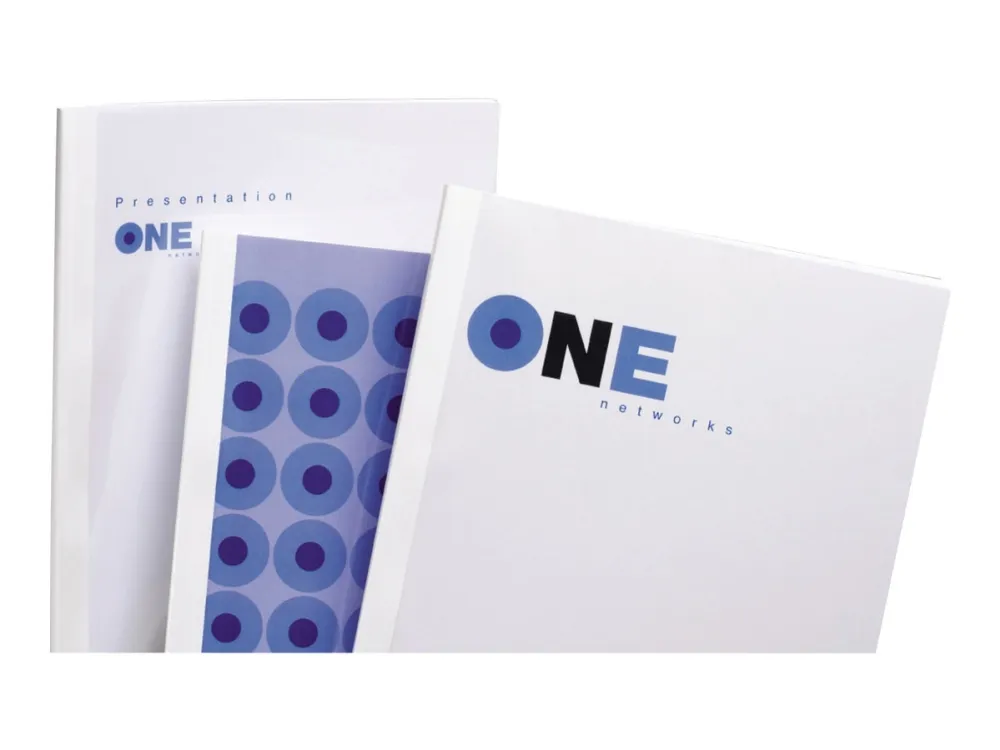 The Standard Thermal Binding Covers give a stylish ‘perfect bound’ look to documents. They combine a transparent PVC front to display the title page clearly and a silk-finish back, forming a totally secure spine with permanently bound pages.