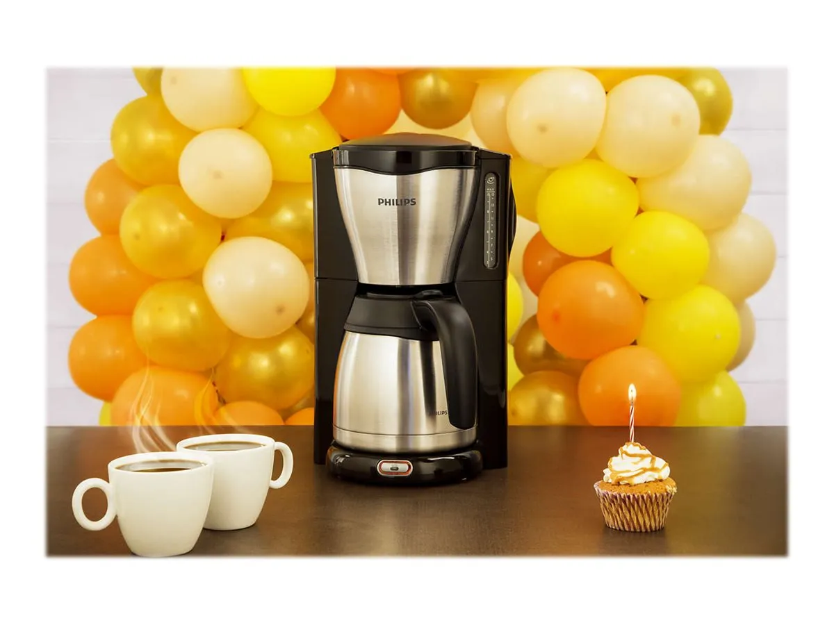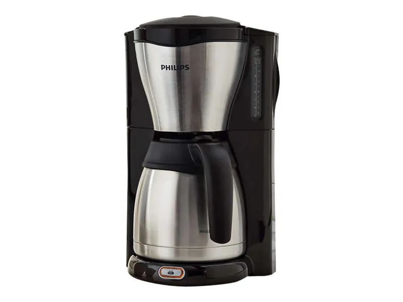 Elegant thermal jug for fresh coffee! This metal Philips coffeemaker is ideal for people seeking excellent quality, in aroma as well as in design. The stainless steel double-wall thermal jug keeps your coffee fresh and hot for longer.
