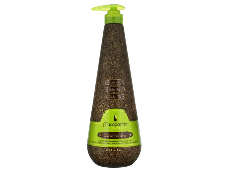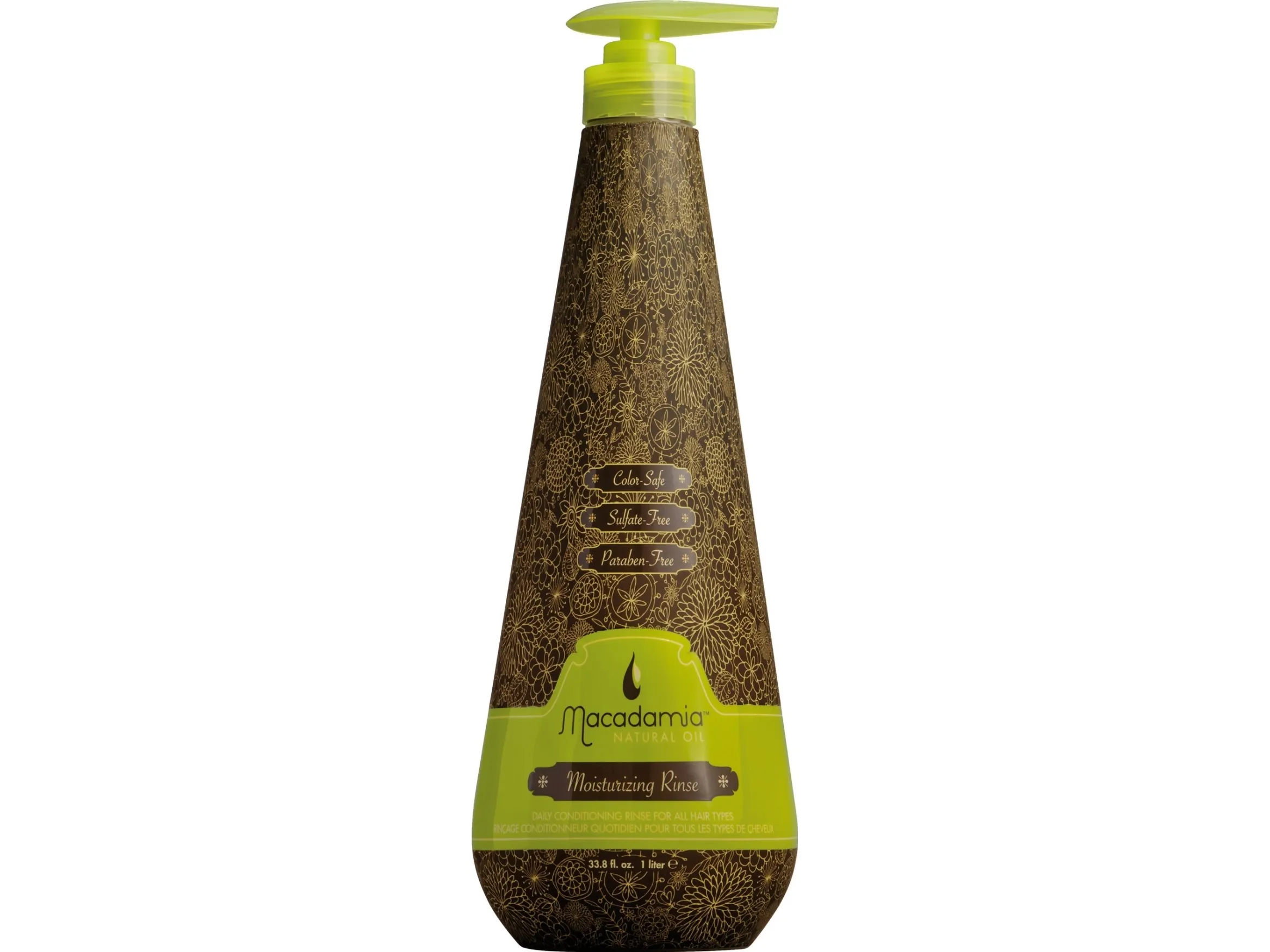 Indulge in a conditioning treatment formulated to softly nourish and fortify your hair while protecting it from the sun and other harsh elements. The Macadamia Moisturizing Rinse is an advanced conditioner that will leave hair luxuriously soft, manageable, and ready to style for the day ahead.\n\n- Gently detangles and smooths frizz\n- Nourishes and protects\n- Leaves hair soft and manageable\n- Provides UV protection\n- Reduces static