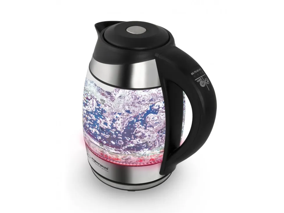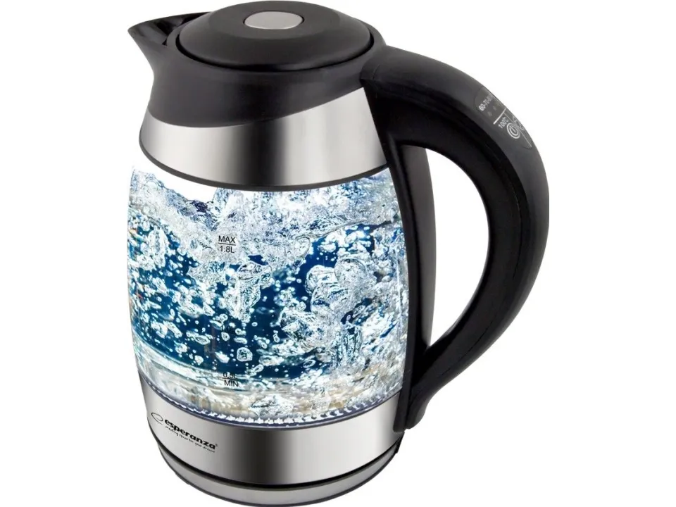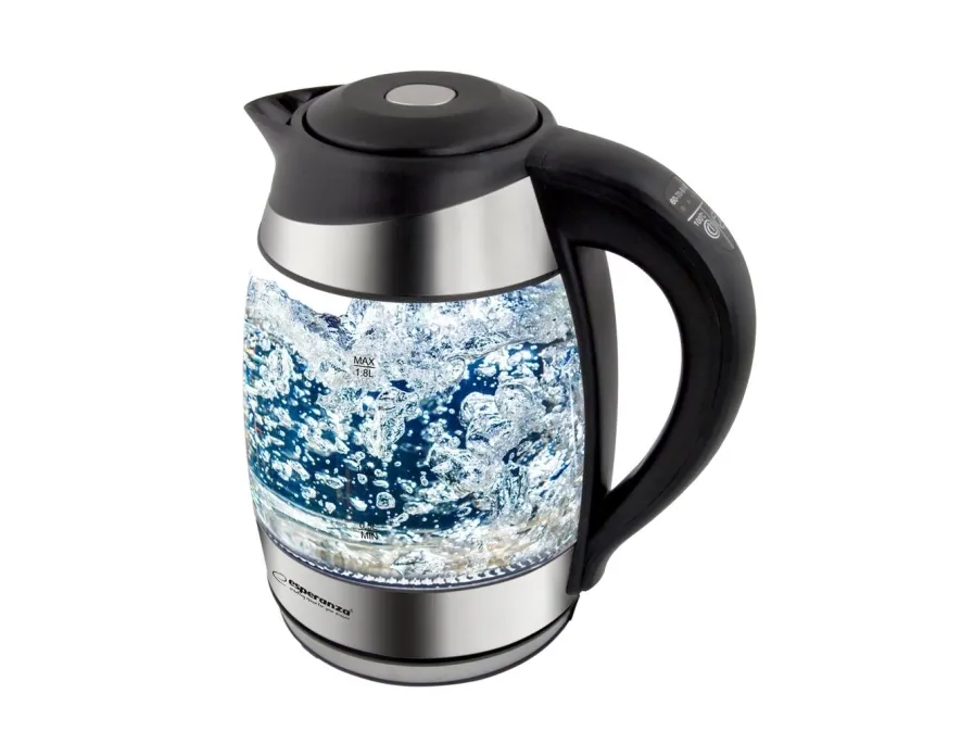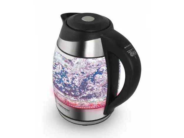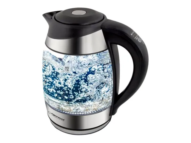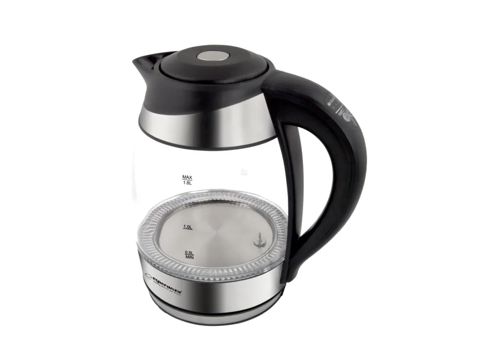 Esperanza EKK026, 1,7 L, 2200 W, Musta, Läpinäkyvä, Lasi, Muovi, Säädettävä termostaatti, Veden tason ilmaisin
