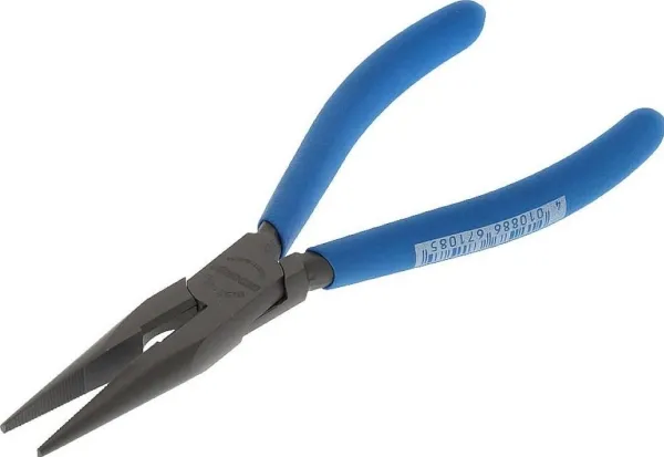 Acc. to DIN ISO 5745. Long, flat-round jaws, straight gripping faces, serrated. For holding, gripping, bending and cutting. Induction-hardened precision cutting edges, hardness 61 - 63 HRC. Gedore special hardened and tempered steel, drop-forged, oil-hardened and annealed. JC = chrome-plated, with 2-component handles. TL = steel-grey, with blue dipped non-slip handles.Gedore 6710880. Width: 65 mm, Height: 60 mm, Weight: 129 g