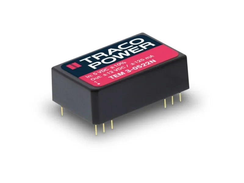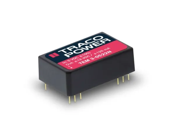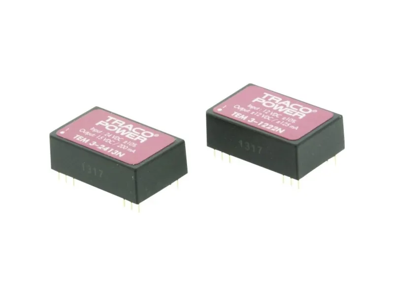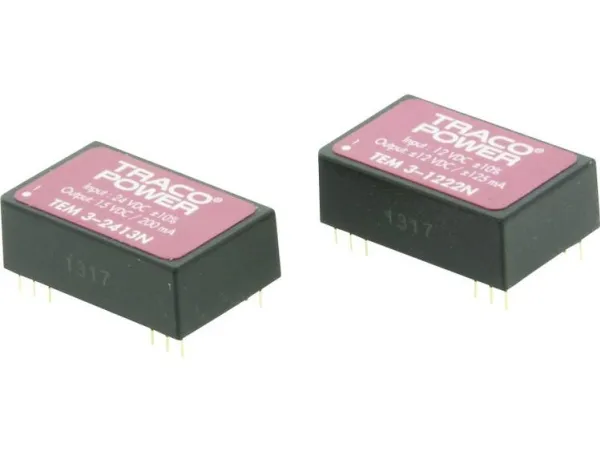 DC/DC-muunnin, tem 3M-sarjaKustannusoptimoitu rakenne DIL-24-kotelossa, jatkuva oikosulkusuojaus, I/O-eristys 1500 V/DC, tulosuodatin EN 55022, luokka A, teollisuusstandardin mukainen pinnitys.