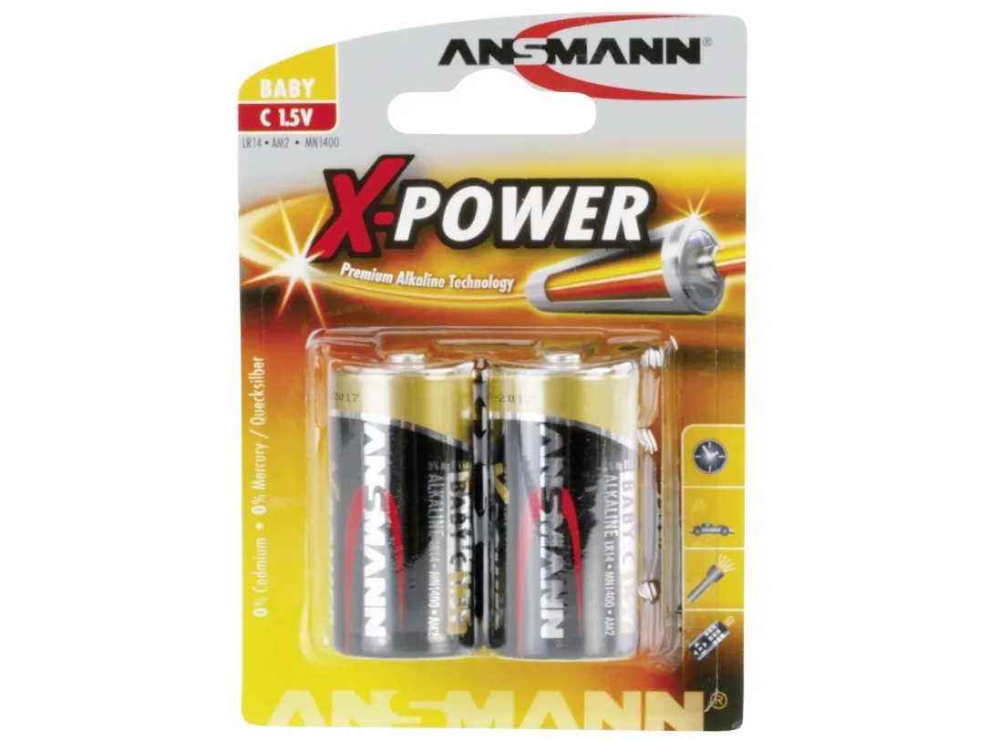 Ansmann Baby C, Kertakäyttöinen akku, Alkali, 1,5 V, 2 kpl, Musta, 25,8 mm