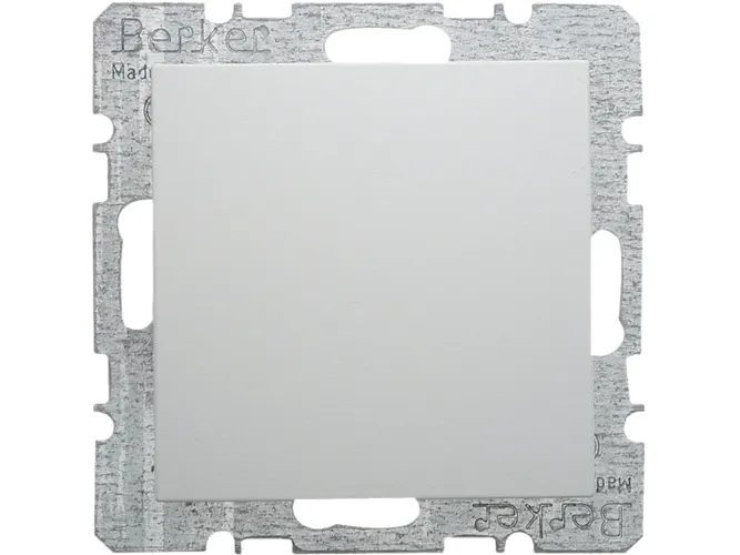 - with supporting ring\n- centre plate for plug-in fixing\n- Blind plug with centre plate, base and spreader claws\n- polar white matt\n- Berker S.1/B.3/B.7