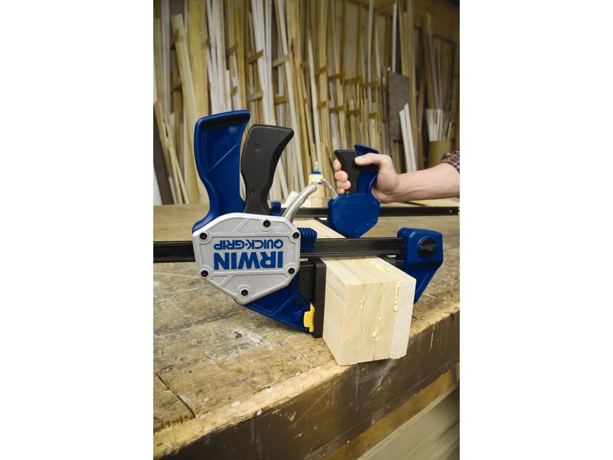 XP One-Handed Bar Clamp/Spreader The clamp offers “Xtreme Pressure” which is up to two times greater than all of its competitors. Full face pads and a supporting foot have been added, plus lockable swivel jaws to ensure that both jaws are always parallel and pressure is evenly distributed when gluing. - five patents pending; - specifi cally designed for gluing applications.