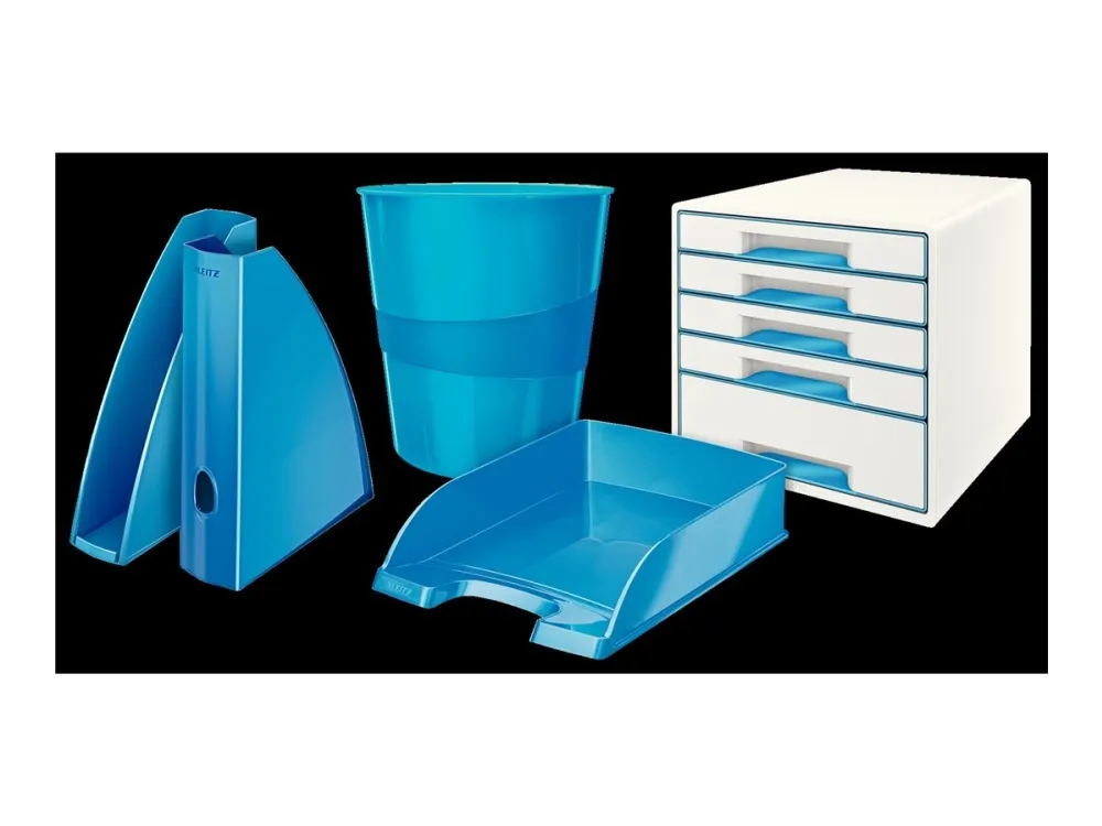 Katseenvangitseva, korkealaatuinen ja kiiltäväpintainen Leitz lomakelaatikko sopii täydellisesti yhteen muiden Leitz WOW tuotteiden kanssa.