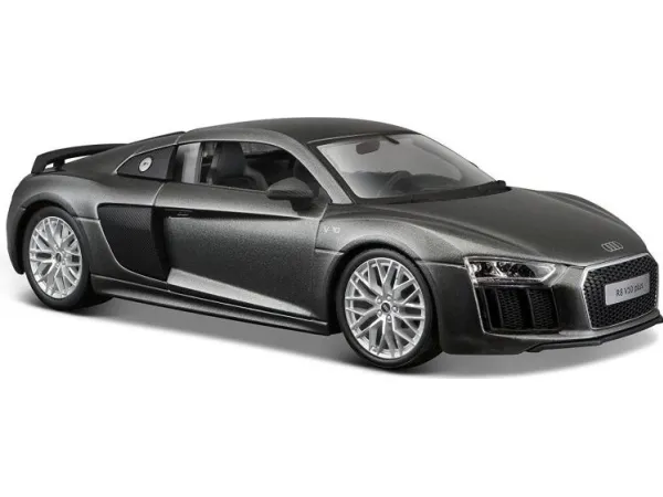Audi R8 V10 Plus Metallic Grey 1:24. Maiston 1:24 autot ovat aina laadukkaita ja yksityiskohdiltaan kauniita ja vaikuttavia. Tämä malli on esimerkki siitä, kuinka aitoja ja alkuperäisen kaltaisia Bburagon autot ovat. Ovet, etu- ja takaluukut voi tietysti avata paljastaen kauniit yksityiskohdat. Malli keräilijöille sekä pienille ja isoille leikki-ikäisille lapsille. Pituus n. 18,5 cm. Valetut metalli- ja muoviosat. Toimitetaan laatikossa, jossa on ikkuna. 3-vuotiaasta.