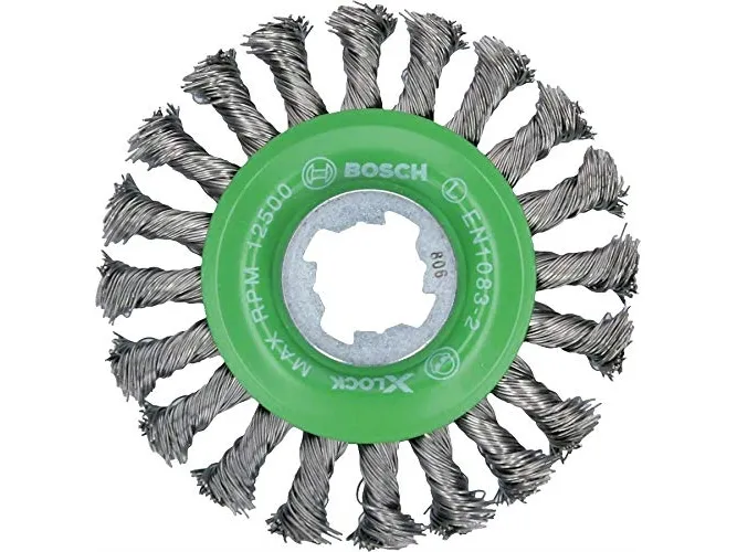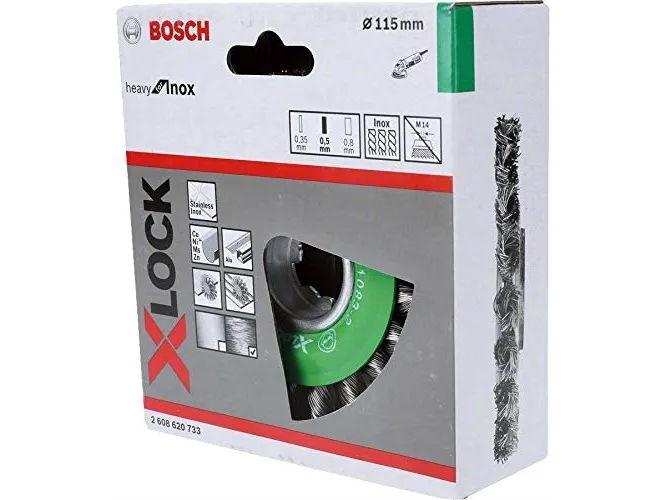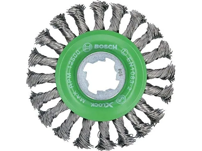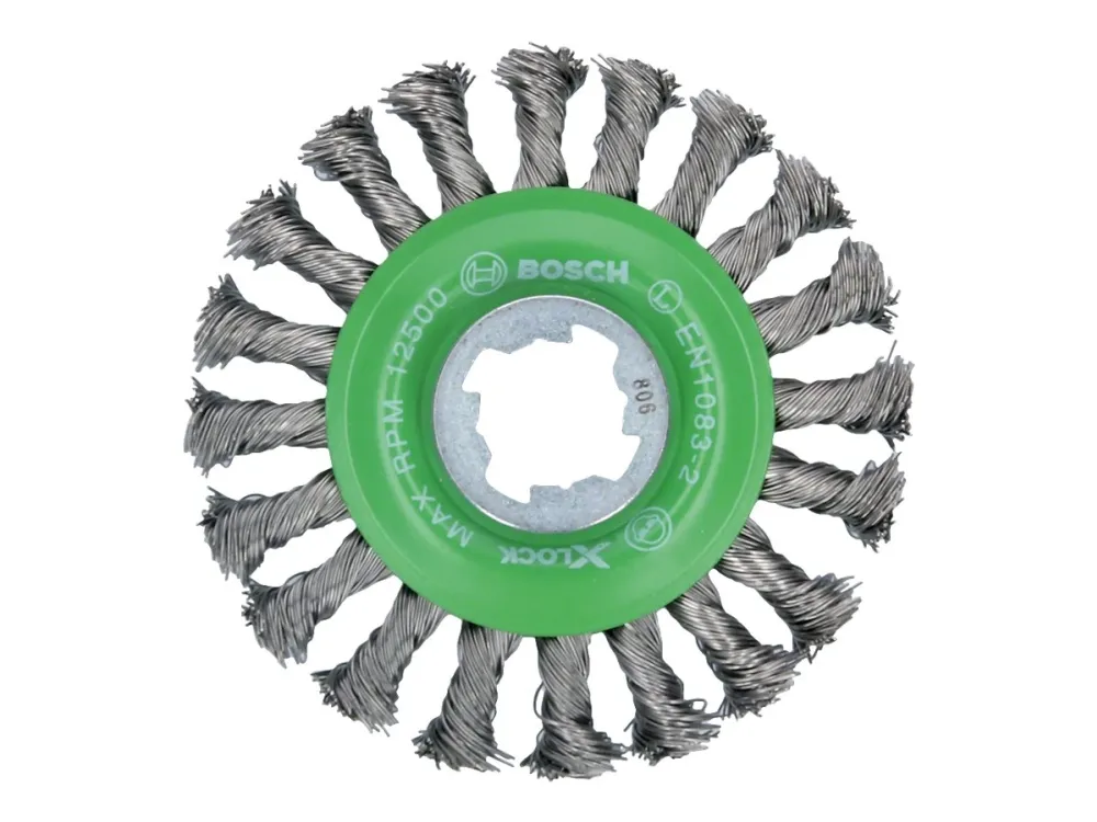 The X-LOCK heavy for Inox wire wheel provides an aggressive cleaning performance. It is fitted with knotted wire for heavy-duty cleaning applications of small Inox surfaces. It is suitable for use with X-LOCK angle grinders.