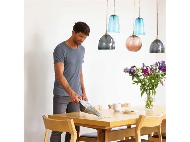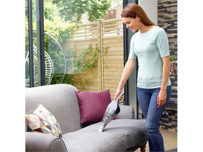The DustBuster NVC215W is also equipped to handle pet hair, making it a valuable tool for pet owners. The bagless dust collection system, with a capacity of 0.385 liters and two levels of filtration, makes emptying the vacuum simple. The vacuum includes a charging stand that not only keeps the device charged but also organizes the vacuum and its accessories neatly. With a battery capacity of 1.5 Ah and a charge time of 10 hours, it offers up to 9.5 minutes of continuous operation. A charging indicator adds to its user-friendly features, making the BLACK+DECKER DustBuster NVC215W a practical choice for effective and easy cleaning.