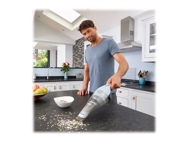 The BLACK+DECKER DustBuster NVC215W offers a blend of power and convenience for home cleaning. This handheld vacuum cleaner is designed for dry cleaning and combines a strong suction capability with a cordless design for ease of use. With an airflow of 14.7 l/s and a maximum suction power of 15.5 W, it provides thorough cleaning on various surfaces. Its compact size and cordless nature are ideal for quick clean-ups, reaching tight spaces, and keeping your home or vehicle clean.