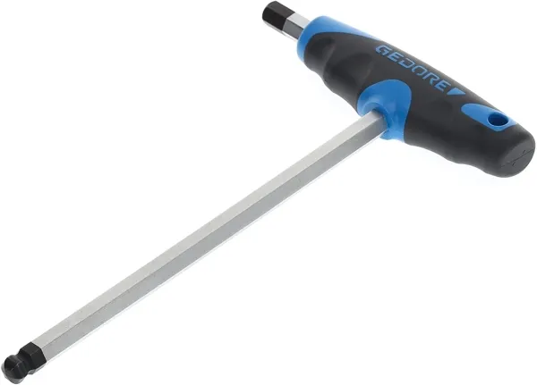 With hanging hole. With 2 hexagons, same size each end. Gedore vanadium steel 61CrSiV5, chromated.