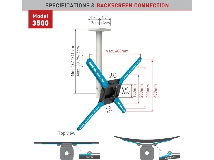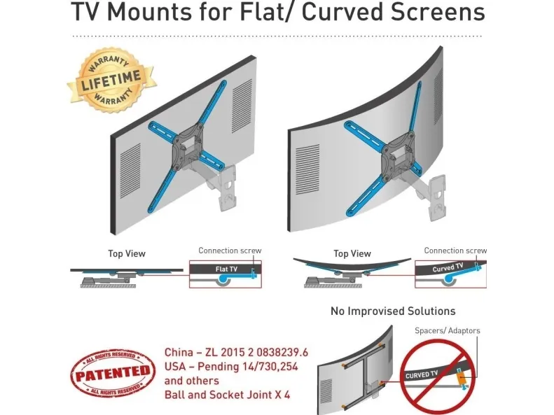 - Includes a patented mechanism to fit both flat and curved screens. - Also compatible for larger screen sizes, where their specifications comply to the mount. - Please check the list of included screen-connection screws in the assembly instructions. If your screen requires different screen-connection screws, please purchase them in your local hardware store.