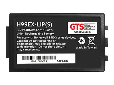 The H99EX-Li(S) from GTS is the premier standard capcacity rechargeable battery for Honeywell Dolphin 99EX/GX devices. 3060 mAh, Li-Polm, 3.7 Volts, 12 Month Warranty. OEM P/N: 99EX-BTSC-1