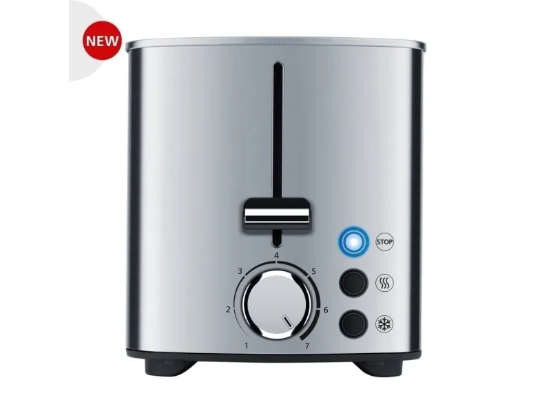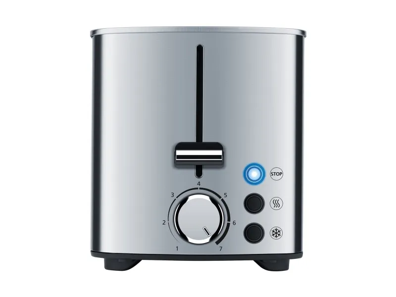 - Double slot toaster for 2 slices of toast\n- Anti-fingerprint stainless steel housing\n- 7 degrees of roasting adjustable\n- 4 functions: toast, defrost, heat-up, stop\n- Automatic slice centring for even browning\n- Automatic shutoff\n- Removable crumb tray\n- Overheat protection\n- Cable storage\n- Incl. bun warmer to crisp up buns or croissants