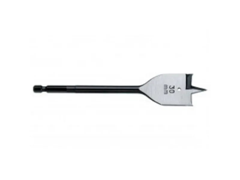 Metabo litteä puuporakone 17x160 mmLitteä puuporakone 17x160 mm. Laadukkaasta teräksestä valmistettu puuporakone, jossa on keskityskärki tarkkaa esiporausta varten ja kaksi terää nopeaan ja sirpaleettomaan poraukseen pehmeään puuhun, lastulevyyn, vaneriin, kevyisiin rakennusmateriaaleihin jne. 4 (6,35 mm) kuusikulmainen varsi sopii tavalliseen porakasettiin ja E 6.3 pistorasioihin.