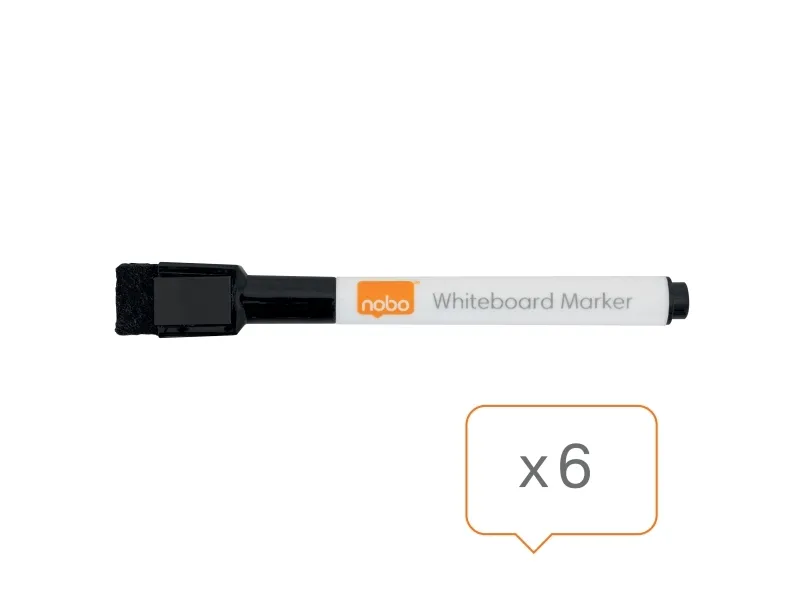 Nobo Dry-Erase markere har hætte og er med en fin sort spids. De er både lugtsvage og indeholder ikke giftigt blæk og er dermed perfekte til brug i ethvert miljø – navnlig i hjemmet eller på skoler. De har desuden en magnetisk viskerhætte, hvilket gør dem nemme at fastgøre på dit magnetiske nobo-whiteboard. Du kan dermed viske tavlen ren, så snart du er færdig med at bruge den, uden at købe separat tavlevisker.