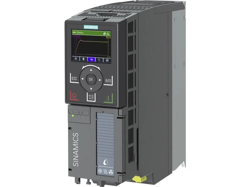 SINAMICS G120X, IP20 / UL open type, FSA, UF, 3 AC 380-480 V, 1,10 kWFrekvensomformer SINAMICS G1 20X beherrsche elementerne til applikationer pumper/ventilation, brancher vand/spildevand (W/WW) samt bygningsteknik/HVAC. Den SINAMICS G120X er overbevisende med enkelt valg og bestilling, nem håndtering ?out of the box og enkel integration i applikationen. Nem opsætning med SINAMICS G120 Smart Access Module eller betjeningspanel IOP-2. Den SINAMICS G1 20X kører stabil under alle net betingelser, overholder EMC-kategorier C2 og C1 valgfrit og er med sin driftstemperatur fra -20 °C til +60 °C særligt robust. Specifikke brancher funktioner som rør påfyldning tilstand og bypass-funktion gør omformer særligt effektivt. Alle enheder i serien er konstant og ensartet i alle spændinger og netværk samt konsekvent på en optimeret og ressourceskånende drift. Dens kompakte design sparer plads i kontaktskabet. Den SINAMICS G1 20X står i 9 størrelser i et effektområde fra 0,75 kW op til 630 kW til rådighed.