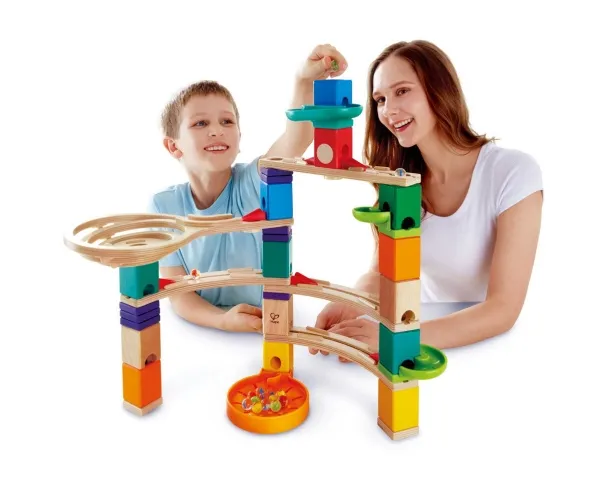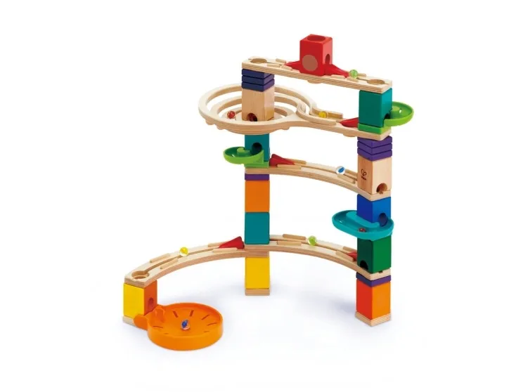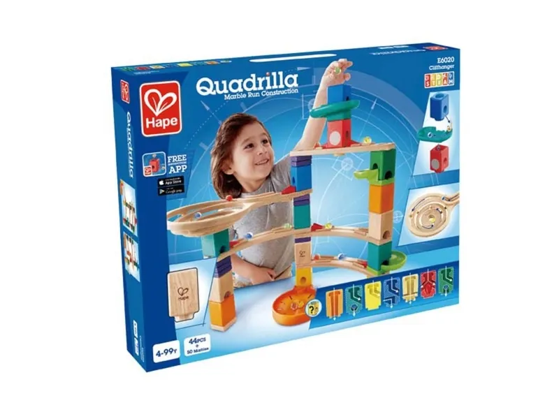 Hapen Quadrilla-sarjan avulla voit rakentaa pois ja luoda kaikenlaisia erilaisia malleja, joissa pallot voivat rullata pois! Tämä on keskikokoinen Quadrilla-sarja, jossa on 94 osaa. Saat muun muassa spiraalielementin, joka luo lisää rullaamisaikaa, ja kiinniottoelementin, joka nappaa pallot helposti kiinni pohjaan. Päämateriaali on puuta. Ikä 4+.