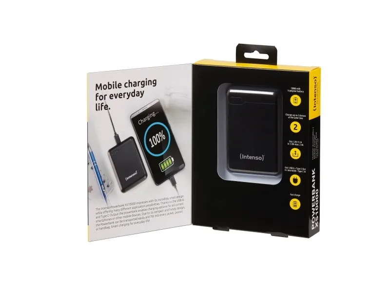 Handy design and stylish colours Thanks to their compact form, the XS Powerbanks can be easily stowed in the bag even during charging. In addition to black and white, the XS5000 and XS10000 Powerbanks are also available in the popular colours petrol, blue and rosé.